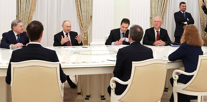 Вот она, та самая таинственная Татьяна, сидит справа от Уиткоффа и переводит ему то, что оживлённо говорит Путин//Фото: kremlin.ru