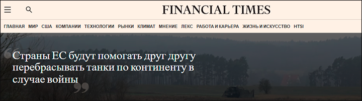 Европейцы координируют логистику на случай начала войны с Россией. Газета Financial Times, скриншот страницы, автоперевод