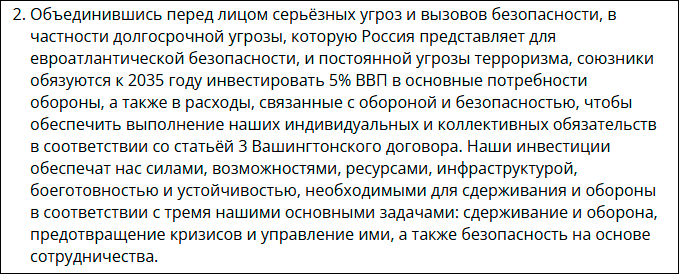 Декларация Гаагского саммита: страны НАТО обязуются увеличить военные расходы, сайт nato.int, скриншот страницы, автоперевод