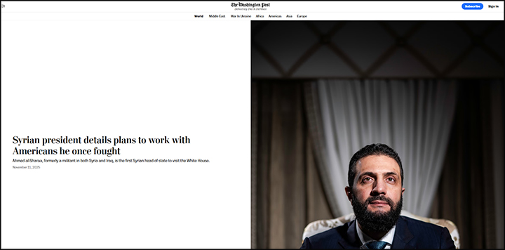 В интервью  The Washington Post Ахмед аш-Шараа заявил, что Сирии необходима поддержка со стороны России. Скриншот: WP.
