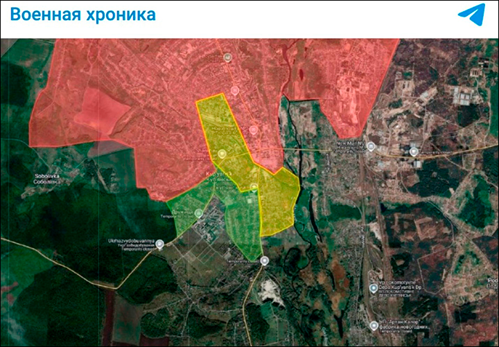 Ситуация в Купянске, Россия давит. Скриншот с ТГ-канала "Военная хроника"