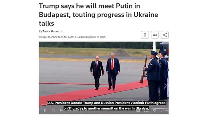 Встреча Путина и Трампа пройдёт в Будапеште. Скриншот страницы с сайта Reuters