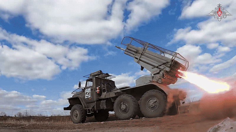 Реактивные снаряды достигают своих целей. Видео с официального ТГ-канала Минобороны
