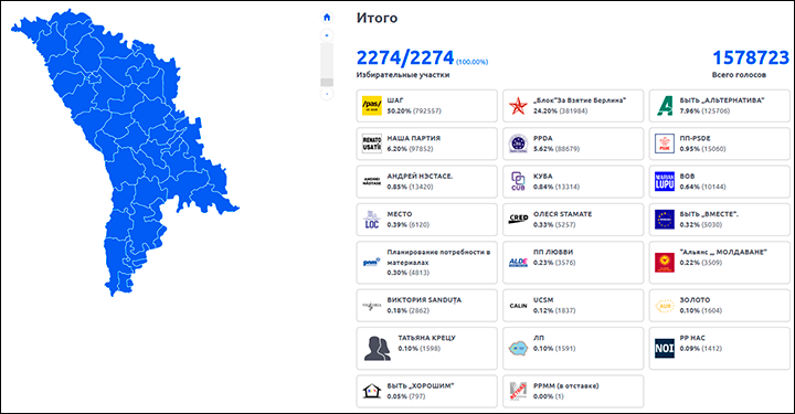Последние парламентские выборы в Молдавии стали для Москвы катастрофой. Скриншот страницы сайта pv.cec.md