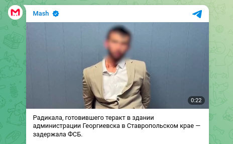 Согласно официальному сообщению ФСБ, в поле зрения спецслужб попал 25-летний житель Георгиевска. Молодой человек, придерживающийся радикальных взглядов, через мессенджер Telegram вышел на связь с представителями запрещённой в России террористической организации и вступил в её ряды.