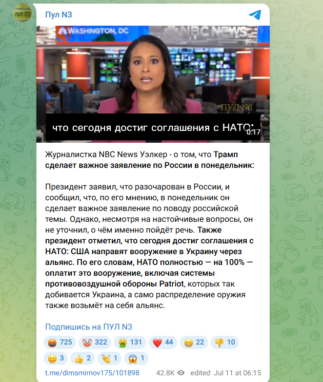 ФОТО: Скриншот https://t.me/dimsmirnov175