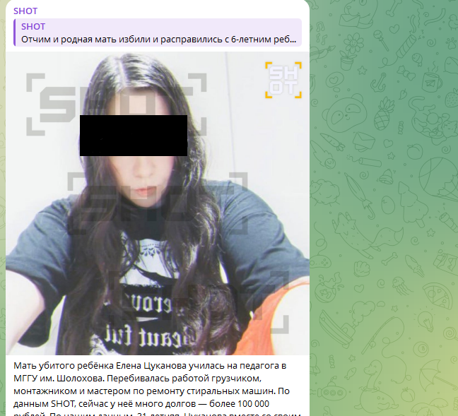 Известно, что у Елены был подтверждённый диагноз "параноидальная шизофрения". Женщина обычно была вполне спокойна, но в последнее время стала очень агрессивна. Кроме того, Елена принимала препараты от своего недуга вместе с синтетическими наркотиками. Во всяком случае, об этом сообщают телеграм-каналы Shot и Baza.