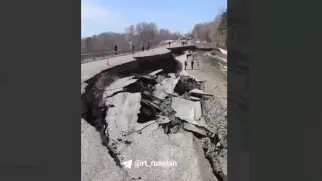 Есть кадры с места обрушения участка трассы на Бийск в Кемеровской области