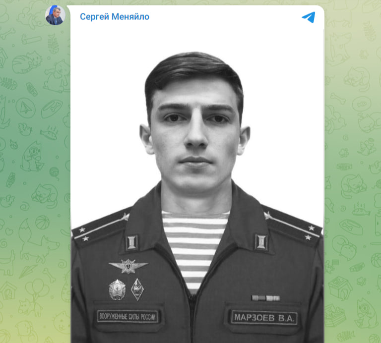 В Запорожье украинскими силами убит командир взвода парашютно-десантного полка Марзоев, сын командующего 18-й общевойсковой армией ЮВО России. При каких обстоятельствах это произошло, рассказал губернатор Меняйло.